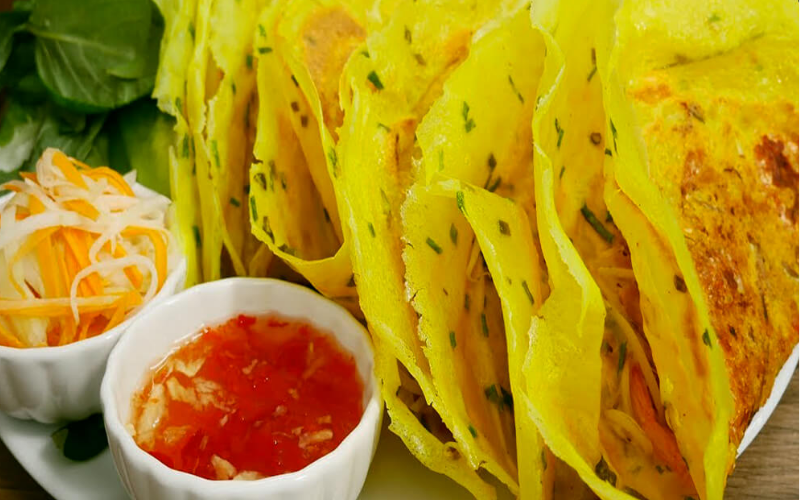 Bánh xèo Cần Thơ có vỏ bánh vàng giòn, nhân tôm, thịt heo và giá đỗ nhiều đầy đặn. Khi ăn, bánh được cuộn với rau sống và chấm nước mắm pha chua ngọt đậm đà. Hương vị bánh béo, giòn tan, đậm đà rất đặc trưng của vùng miền Tây sông nước. Đây là món ăn dân dã nhưng luôn khiến thực khách nhớ mãi.