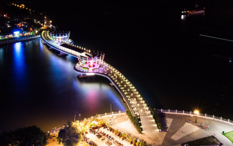 Cầu đi bộ Ninh Kiều hay còn được biết đến với cái tên khác là cầu tình yêu Cần Thơ. Dù nơi đây chỉ vừa được xây dựng năm 2016 nhưng đã sớm thu hút mọi người ghé tới tản bộ, thưởng cảnh và chụp hình lưu niệm nữa. Cầu có hình chữ S cong cong, dài 200m và rộng 7.2m. Đứng từ trên cầu nhìn sang bạn có thể thấy được chiếc cầu dây văng với những nhịp cầu dài nhất Đông Nam Á.